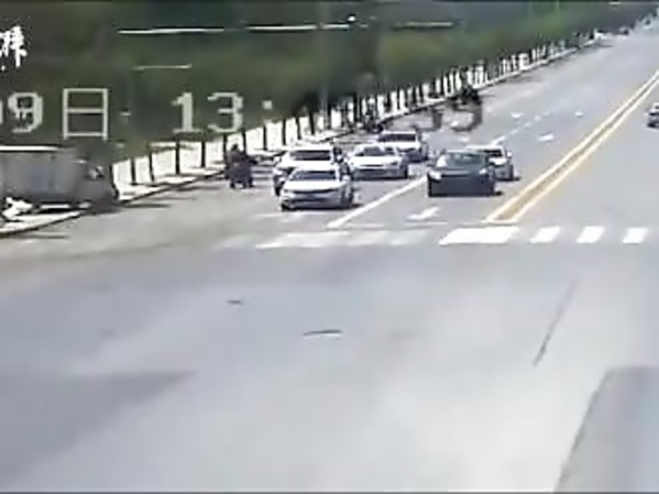 Au milieu d'une route, un corbeau attaque un hérisson