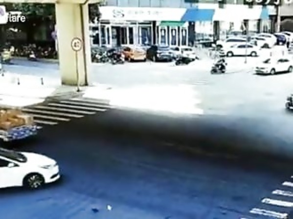 Un pompiste se fait percuter par un scooter fou
