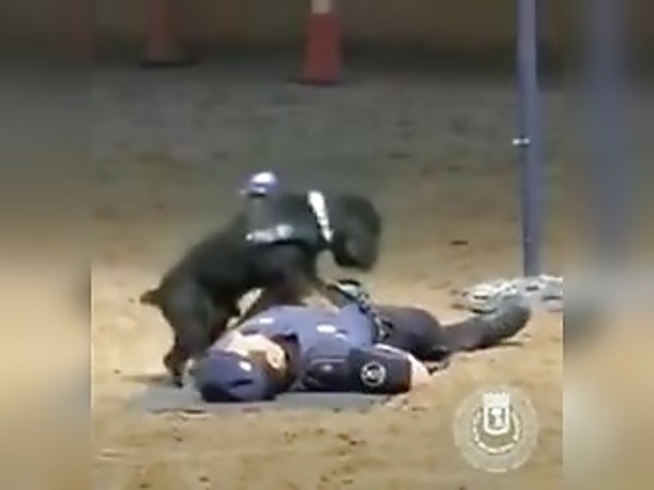 Il tente de sauter par dessus la boue avec un bâton