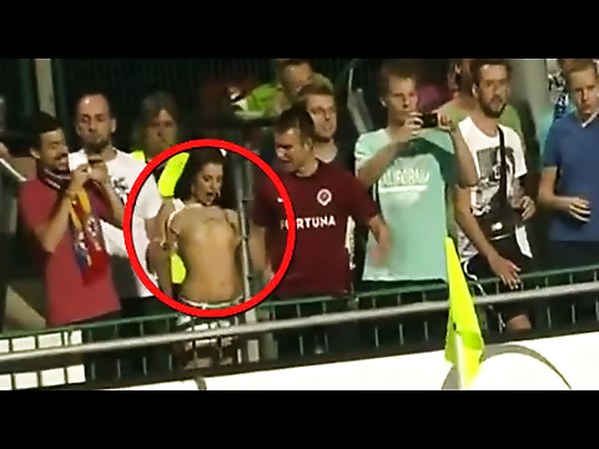 UNE SPECTATRICE A MONTRÉ SA POITRINE À UN JOUEUR QUI ÉTAIT EN TRAIN DE TIRER UN CORNER