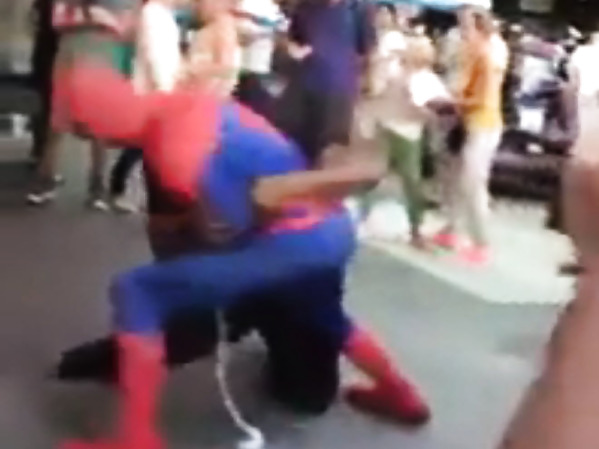 Un homme réalise une illusion d'optique en dessinant un trou et une échelle dans la paume de sa main