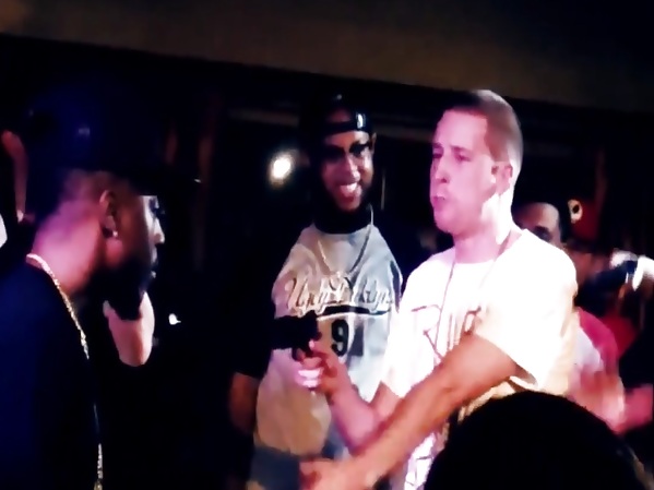 Deux homme en voiture ralentissent pour discuter avec un homme ivre sur le trottoir