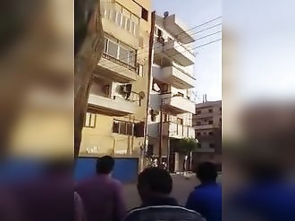 Une femme fait sauter une porte vitrée (Chine)