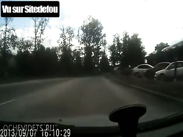 CRASH D'UN MOTARD ENTRE DEUX FILES DE VOITURES (RUSSIE)