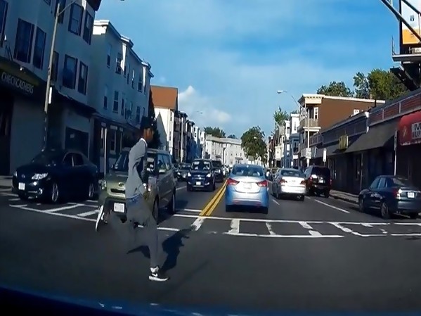 UN HOMME A SOUDAINEMENT TRAVERSÉ EN COURANT À UN CARREFOUR SANS REGARDER