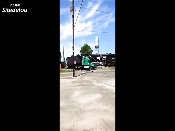 TRAIN PERCUTE UN CAMION COINCÉ SUR UN PASSAGE INTERDIT AUX POIDS LOURDS ( SYCAMORE, USA)