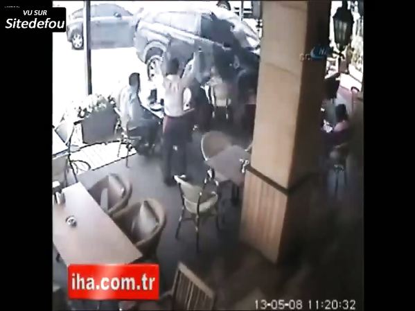 AUTOMOBILISTE RENTRE DANS UN CAFÉ AVEC SA VOITURE