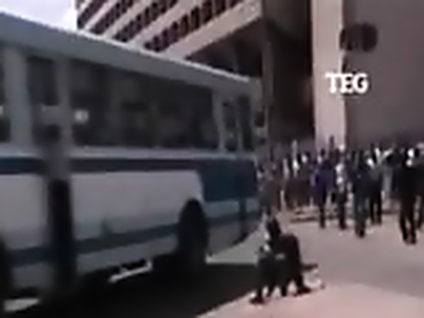 MANIFESTANT SE FAIT RENVERSER PAR UN BUS