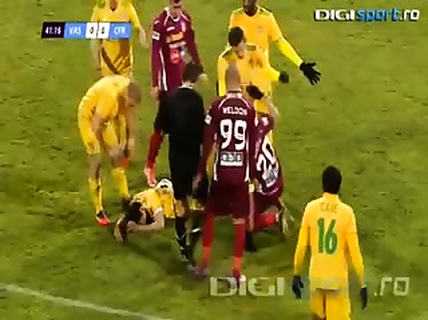 JOUEUR DE FOOTBALL PREND UN COUP DE PIED DANS LA BOUCHE, ET PERD 5 DENTS (ZHIVKO MILANOV DU CLUB ROUMAIN DE VASLUI)