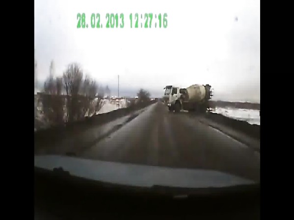 AUTOMOBILISTE SE FAIT COUPER LA ROUTE PAR UN CAMION TOUPIE