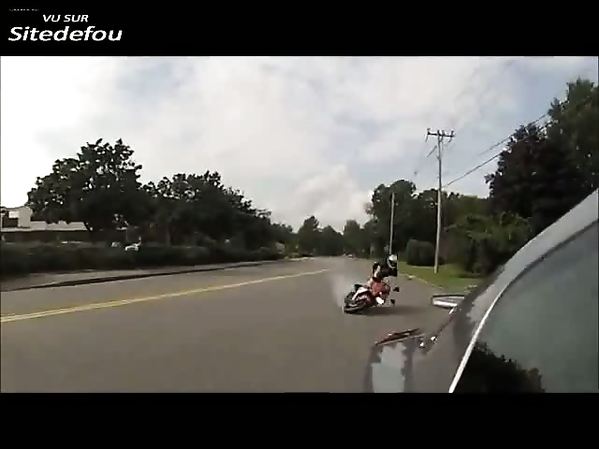 MOTARD FAIT LE CON SUR LA ROUTE, ET GLISSE MÉCHAMMENT CONTRE UNE VOITURE