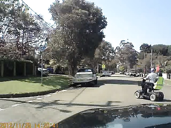 IDIOT EN SCOOTER ÉLECTRIQUE 4 ROUES MANQUE DE SE FAIRE PERCUTER