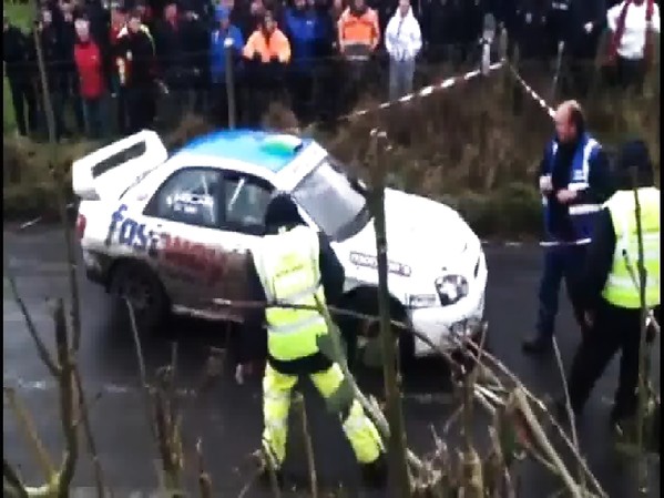 PILOTE DE RALLY SE TROMPE DE ROUTE ET PERCUTE UN RESPONSABLE DE COURSE