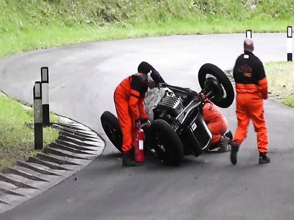 PILOTE RETOURNE SA VOITURE LORS D'UNE COURSE VINTAGE