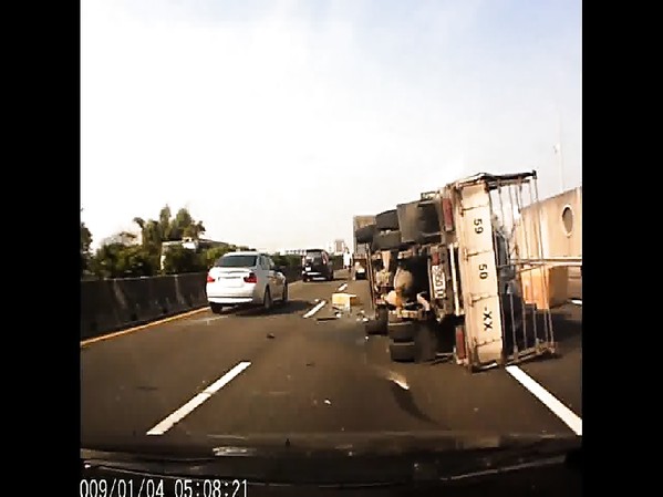 UN CAMIONNEUR PERD LE CONTRÔLE ET SE RETOURNE SUR L'AUTOROUTE