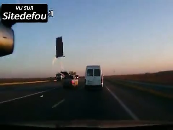 LE COFFRE DE TOIT D'UN AUTOMOBILISTE S'ENVOLE SUR L'AUTOROUTE