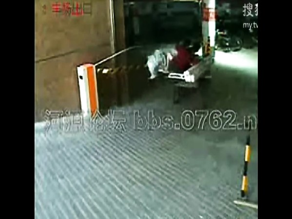 IDIOT S'ACCROCHE À UNE BARRIÈRE QU'IL VIENT DE FORCER AVEC DEUX AMIS