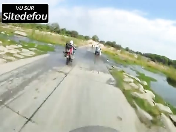 2 MOTARDS SE PLANTENT EN PASSANT SUR UNE ROUTE INNONDÉE