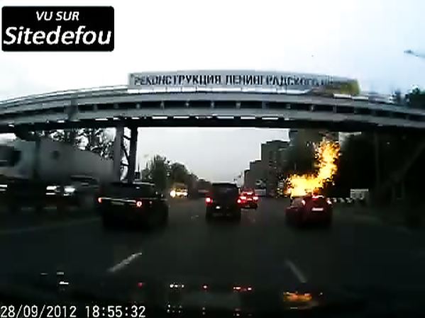 DES LAMPADAIRES TOMBENT SUR LA ROUTE ET SUR DES AUTOMOBILISTES EN RUSSIE (MÊME EUX ABUSENT DE LA VODKA!)