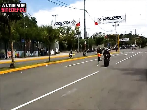 UN GAMIN TÊTE EN L'AIR MAIS CHANCEUX MANQUE DE SE FAIRE ÉCRASER PAR UNE MOTO LORS D'UNE COURSE