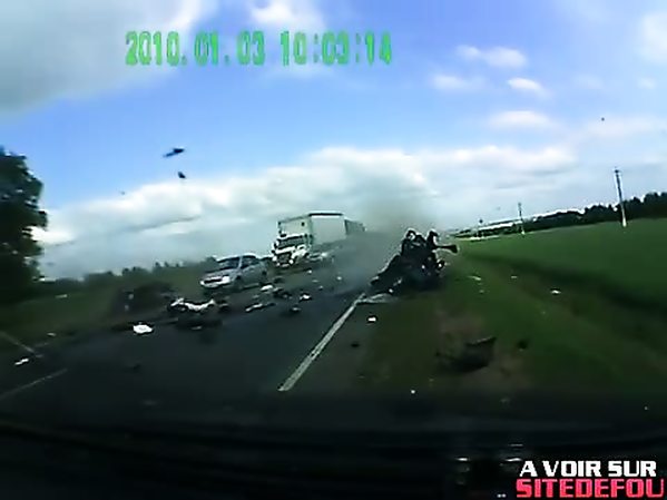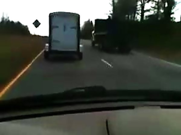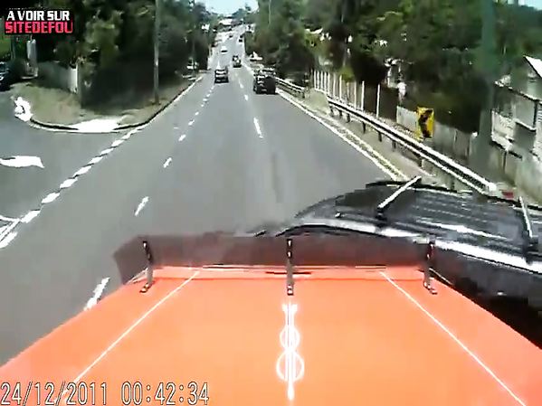 AUTOMOBILISTE COUPE LÉGÈREMENT LA ROUTE D'UN CAMION ET SE FAIT EMBARQUER