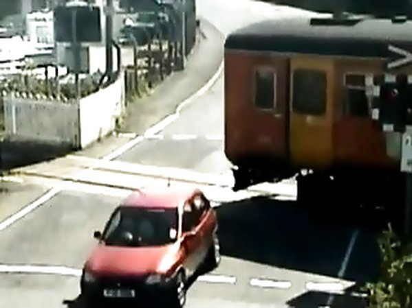 AUTOMOBILISTE ÉVITE DE TRÈS PEU UN TRAIN