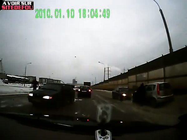 AUTOMOBILISTE MONTE SUR UNE VOITURE EN TENTANT DE LA DOUBLER