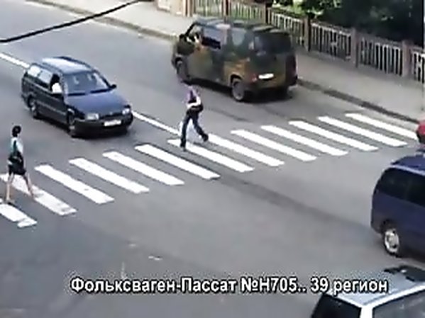 PIÉTONNE PERCUTÉE ALORS QU'ELLE TRAVERSE SUR UN PASSAGE CLOUTÉ (RUSSIE)