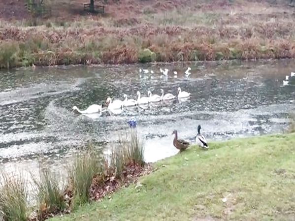 UN CYGNE SE PREND POUR UN BRISE-GLACE POUR AIDER SES COMPAGNONS