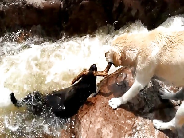 UN LABRADOR SAUVE SON POTE DANS UNE CASCADE