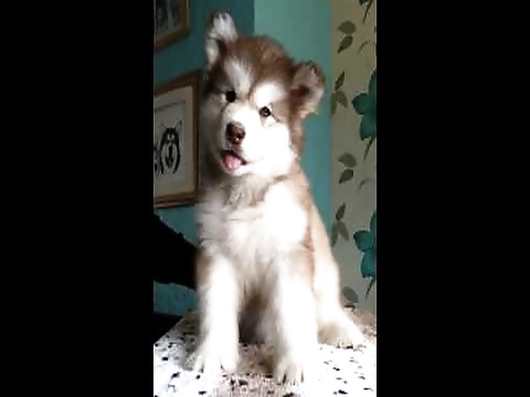 UN CHIOT MALAMUTE DE L'ALASKA EST CONFUS EN ENTENDANT DES DRÔLES DE BRUITS