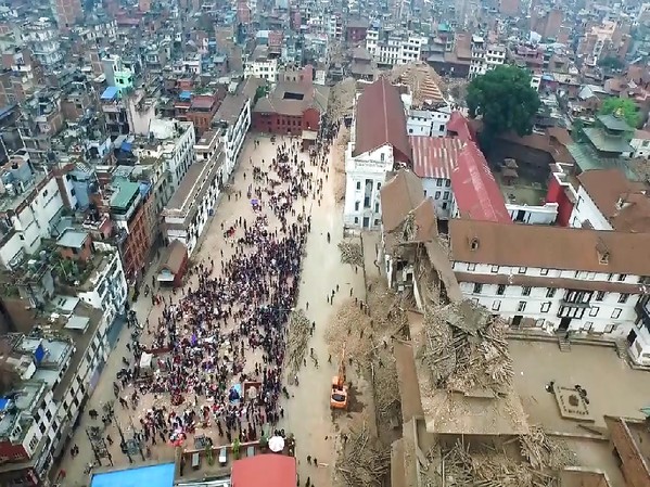 UN DRONE FILME LE CENTRE DE KATMANDOU DÉVASTÉ