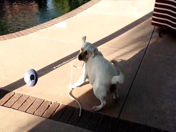 JULIE, UN LABRADOR RETRIEVER DE 2 ANS, S'ENTRAINE AU LANCER DU MARTEAU
