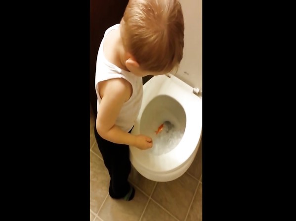 UN PETIT GARÇON FAIT SES ADIEUX À SON POISSON ROUGE (CUTE)