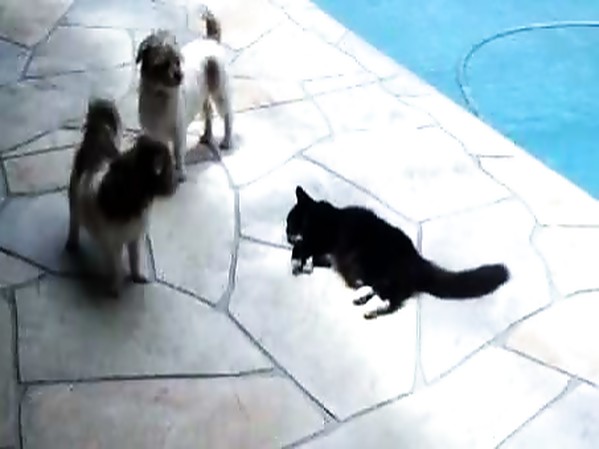 QUAND UN CHAT DÉCIDE DE POUSSER UN CHIEN DANS UNE PISCINE