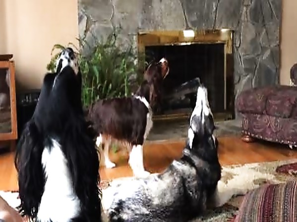 SKY LE CHIEN HUSKY SE FAIT EMBÊTER PAR DEUX CHIENS SPRINGER ANGLAIS
