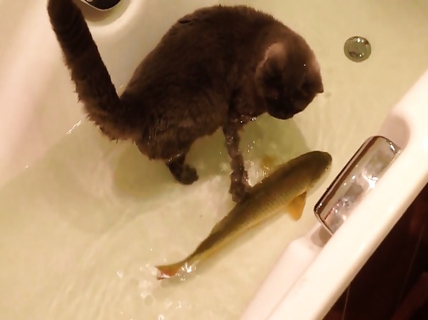 UN HOMME A PLACÉ UN POISSON FRAÎCHEMENT PÊCHÉ DANS SA BAIGNOIRE