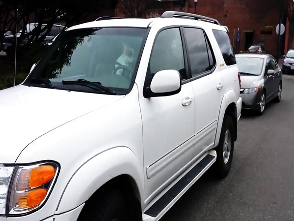 UN AUTOMOBILISTE S'ARRÊTE POUR LAISSER PASSER UN GROUPE D'ANIMAUX