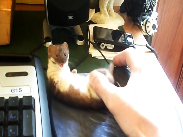 UNE BELETTE JOUE AVEC LA MAIN DE SON PROPRIÉTAIRE