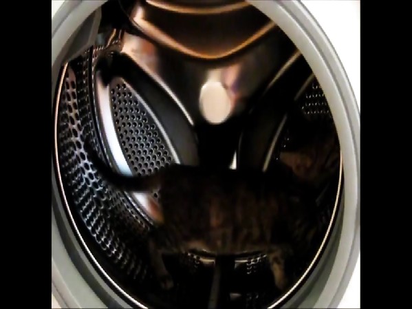 UN CHATON QUI JOUE DANS UNE MACHINE À LAVER