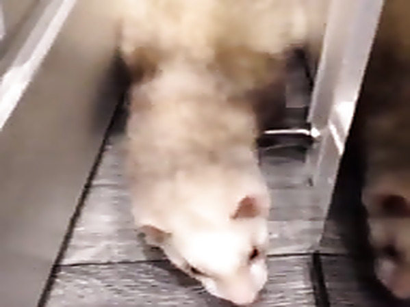 EN VOYANT SON FRÈRE, UN FURET TOMBE EN ARRIÈRE ET SE RETROUVE BLOQUÉ SUR LE DOS ENTRE DEUX PORTES (CUTE)