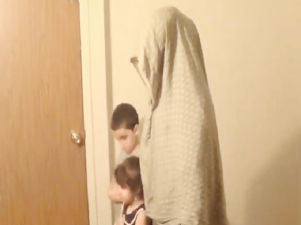 DURANT UNE PRIÈRE, UN HOMME RECOUVERT D'UN VOILE FAIT UNE EFFRAYANTE BLAGUE À DEUX ENFANTS