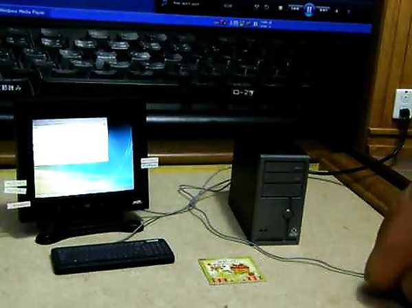UN HOMME NOUS PRÉSENTE SON MINUSCULE ORDINATEUR DE BUREAU