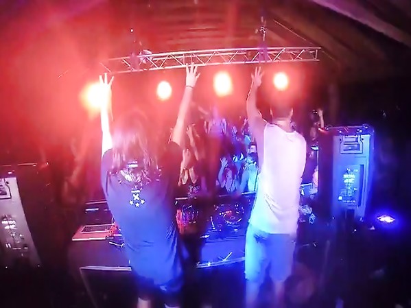 DUO DE DJ BONDISSANTS FAIT MALENCONTREUSEMENT BASCULER UNE TABLE SUR LAQUELLE SONT POSÉES LEURS PLATINES