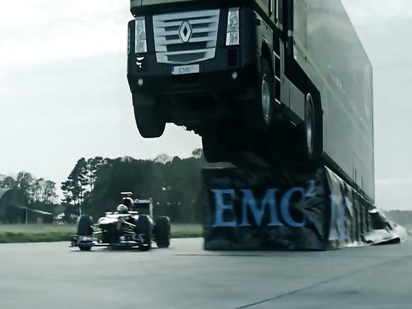 UN CAMION SAUTE PAR-DESSUS UNE F1 LOTUS