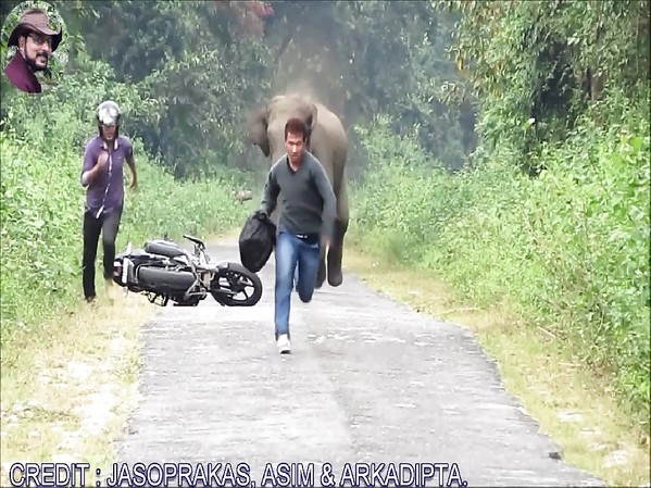 ELÉPHANT TRÈS EN COLÈRE CHASSE DEUX HOMMES
