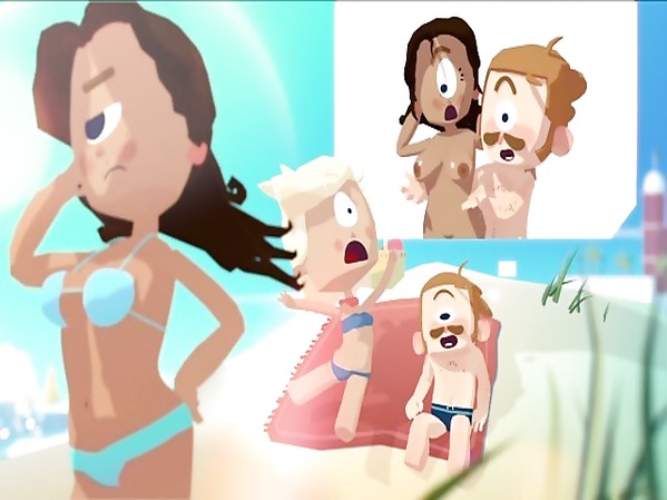 CHIEN S'ACHARNE SUR LE BIKINI D'UNE JOLIE BLONDE