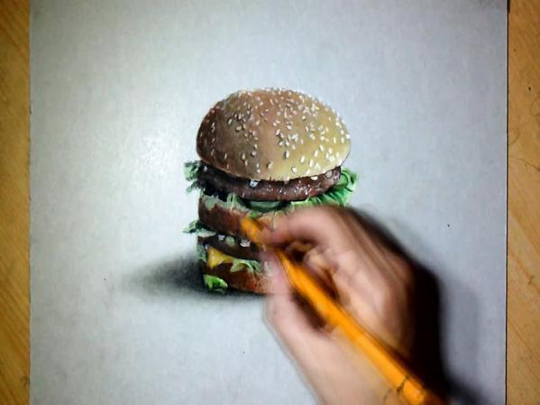 DESSIN EN ACCÉLÉRÉ: UN "BIG MAC" HYPERRÉALISTE