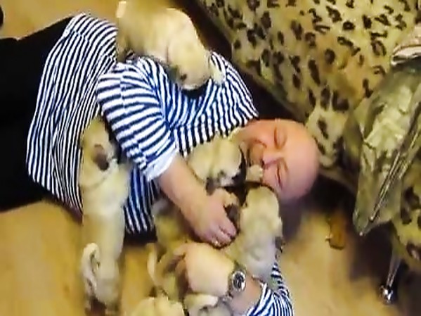 QUAND UN HOMME VA DIRE BONJOUR À SES CHIOTS (CUTE)