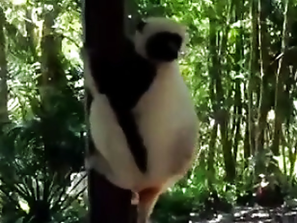 LÉMURIEN APPELÉ SIFAKA SE PREND POUR UN KANGOUROU